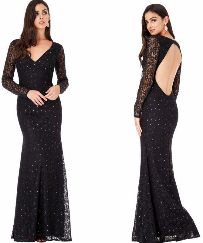 Dámské dlouhé šaty Značky CITY GODDESS - atraktivní přiléhavý střih "mořská panna" vytváří dokonalou siluetu. Krajkové šaty mají podšívku, odhalená záda, dlouhý rukáv. Šaty jsou vhodné kamkoli - pro společenské příležitosti, na večírky, plesy....
