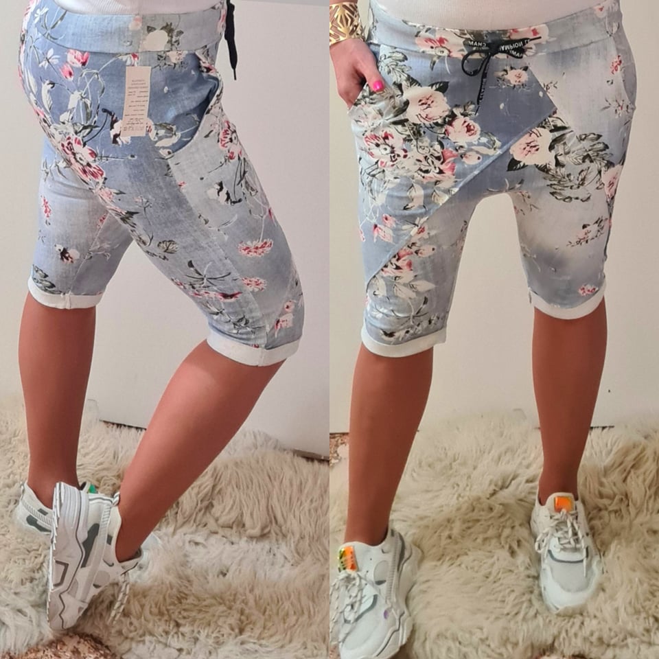 Dámské kraťasy BAGGY s květy světle modráSkladem 2 ks299 Kč/ ks