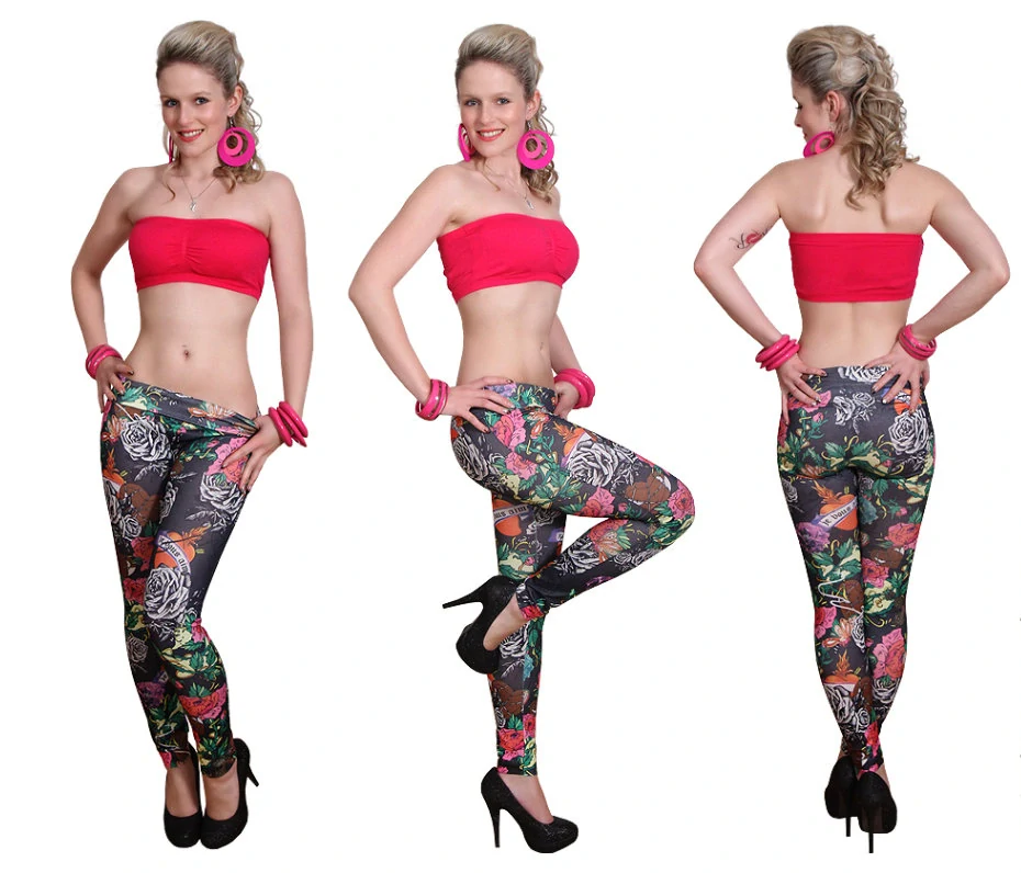 Dámské legíny se stylovým potiskem. Legíny jsou vyrobeny z elastického materiálu, příjemný na nošení. Rozměry: Vel. S / M - délka 88 cm, pas 65-85 cm, boky 80-105 cm Jedna univerzální velikost (první míra měřena v klidu a druhá míra po natažení) elastický materiál materiál: 85% nylon, 15% elastan celý popis