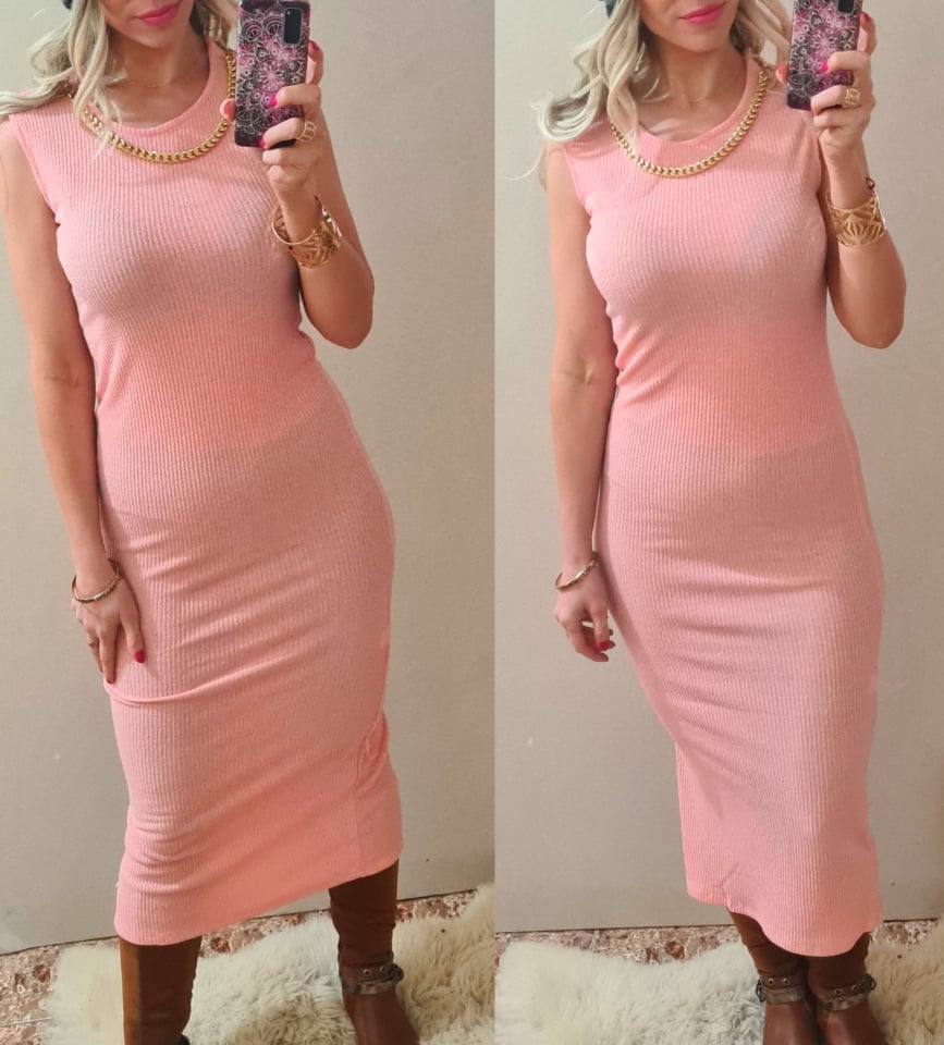 Úpletové dámské midi šaty Ashley růžové