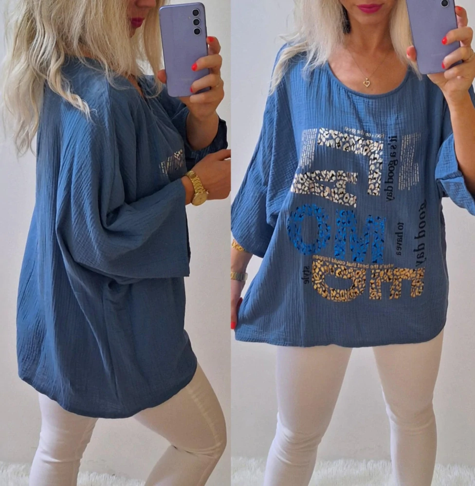 Dámská mušelínová tunika/tričko SÁBA džínově modrá