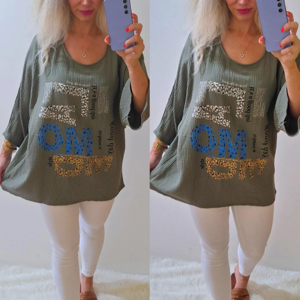 Dámská mušelínová tunika/tričko SÁBA khaki