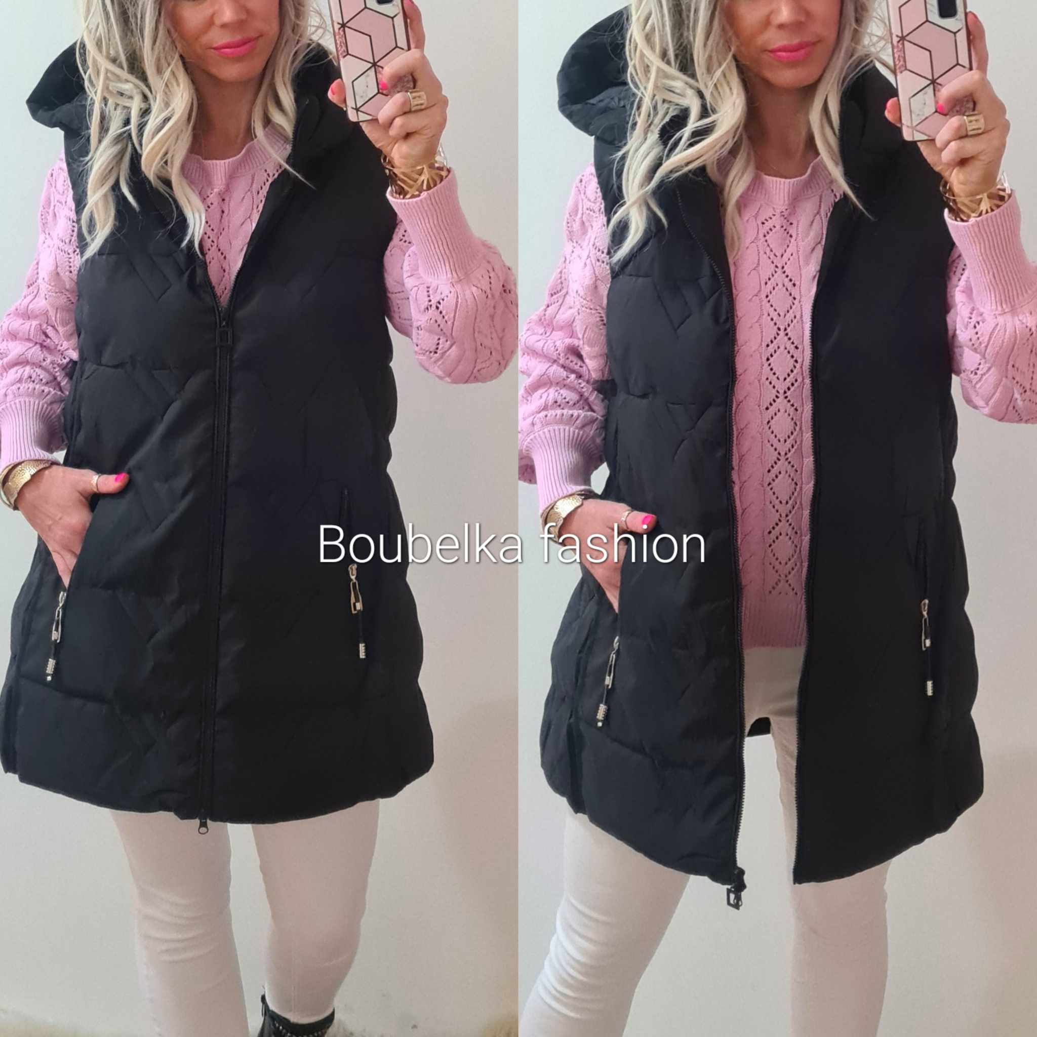 Dámská vesta s kapucí vpředu na zip černáSkladem 1 ks499 Kč/ ks