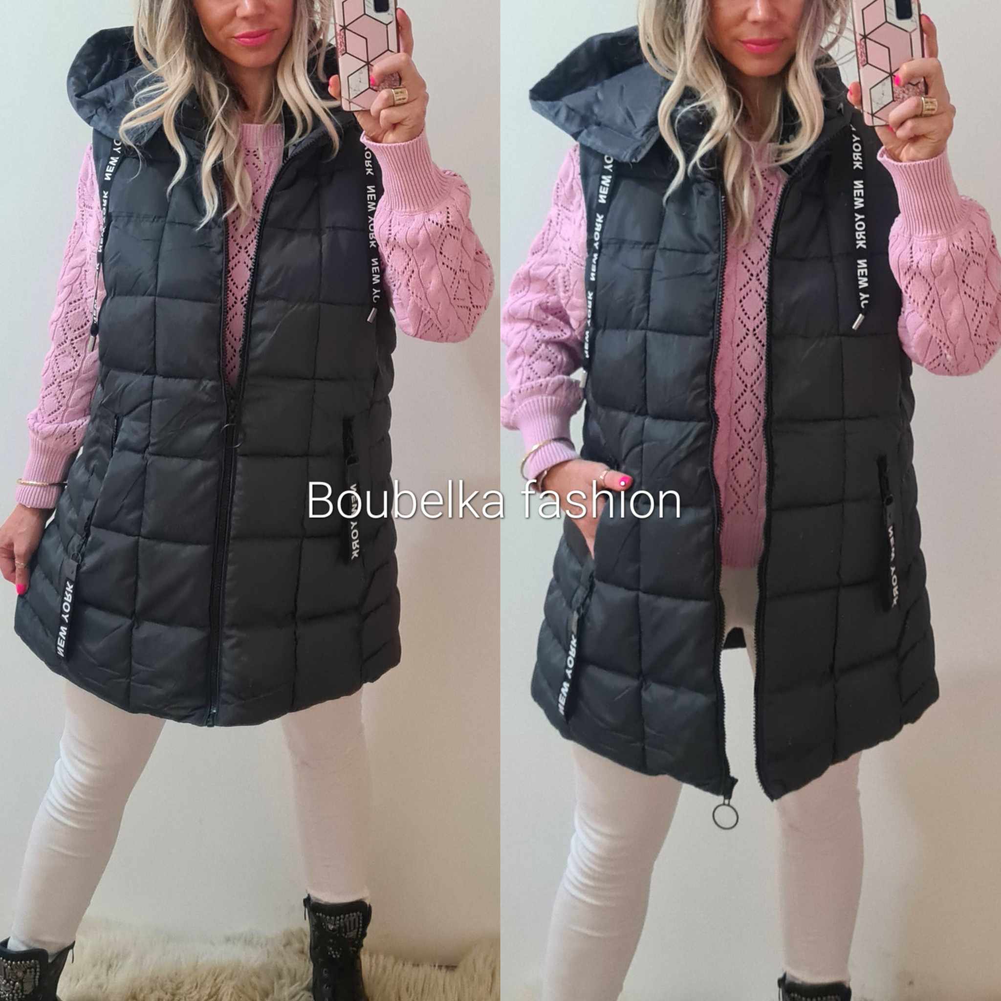 Dámská prošívaná vesta s kapucí vpředu na zip tmavě šedáSkladem 1 ks499 Kč/ ks