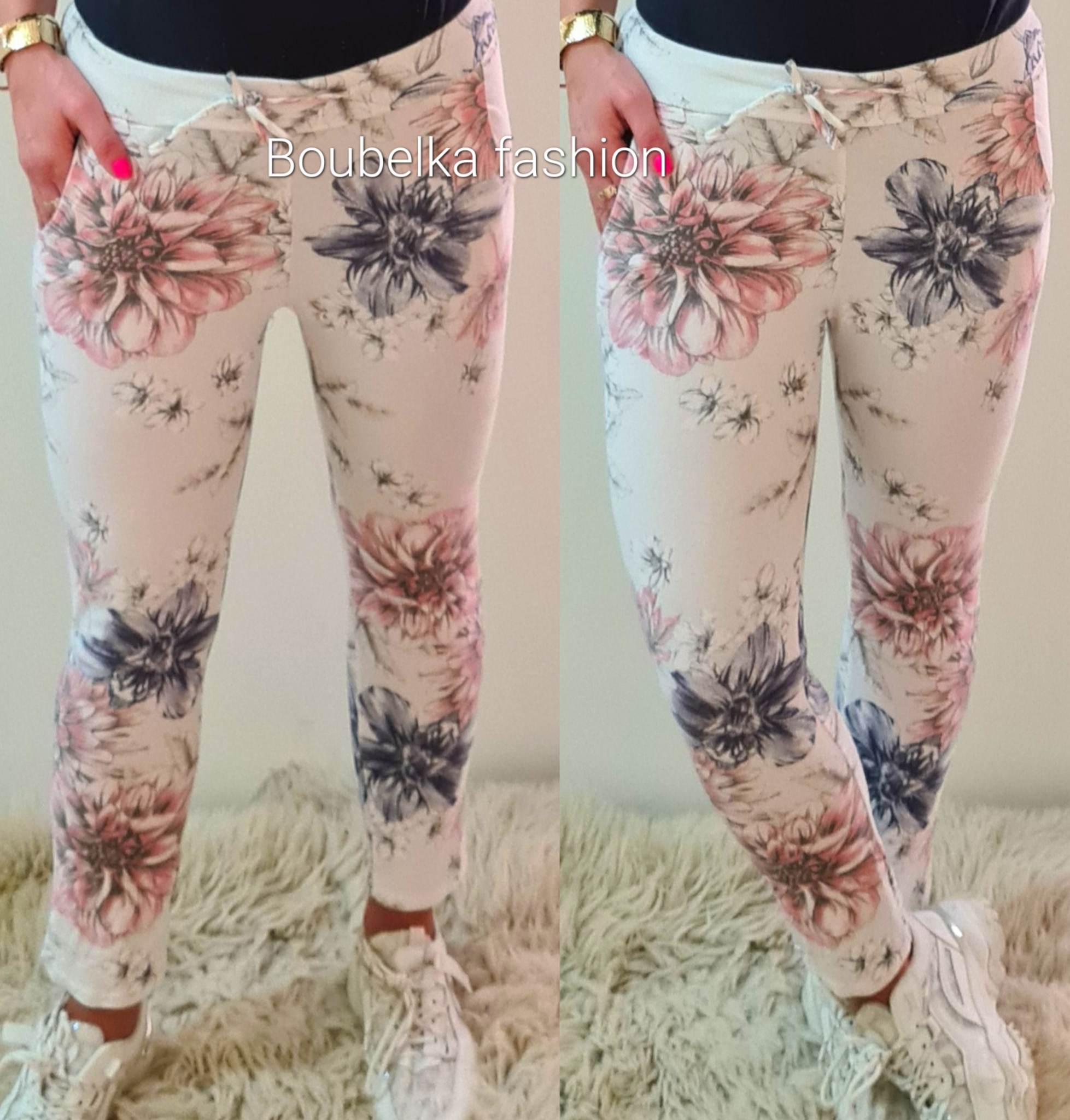 Dámské bavlněné kalhoty s květy bíléSkladem 2 ks299 Kč/ ks