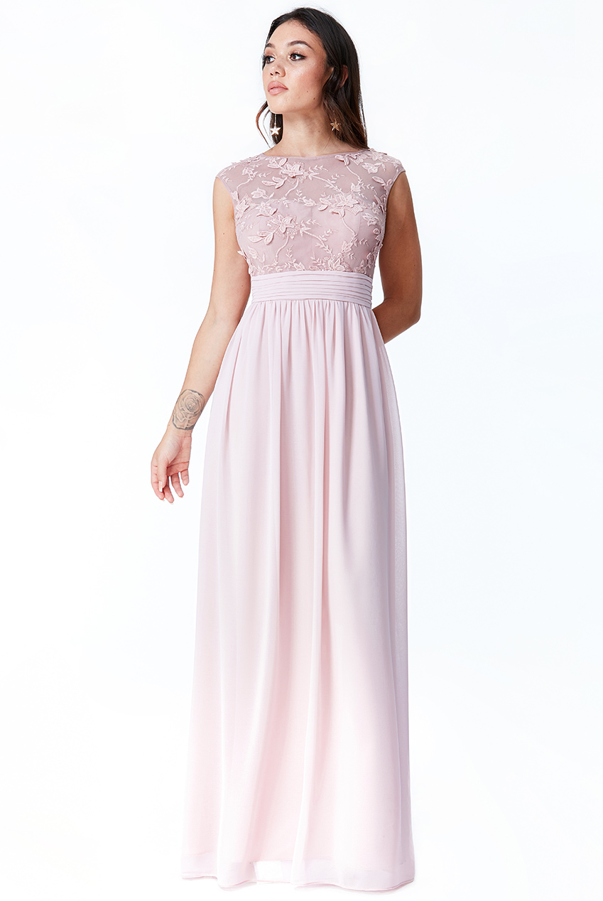 Dámské dlouhé šaty ANETTE s výšivkou růžová