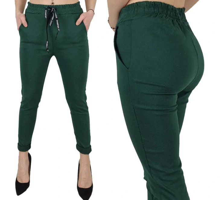 Dámské kalhoty se šňůrkou v pase(nežehlí se) zelená