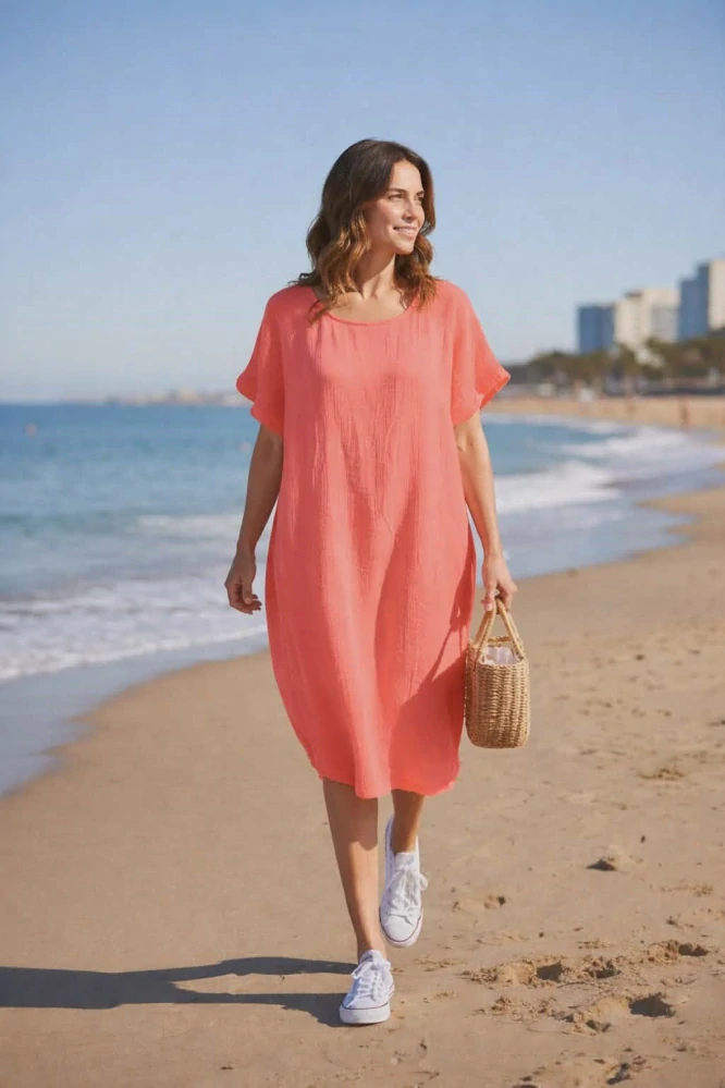 Dámské mušelínové šaty INKA na ramenou síťování coralSkladem 2 ks399 Kč/ ks