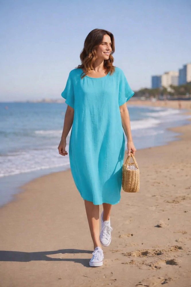Dámské mušelínové šaty INKA na ramenou síťování modrá