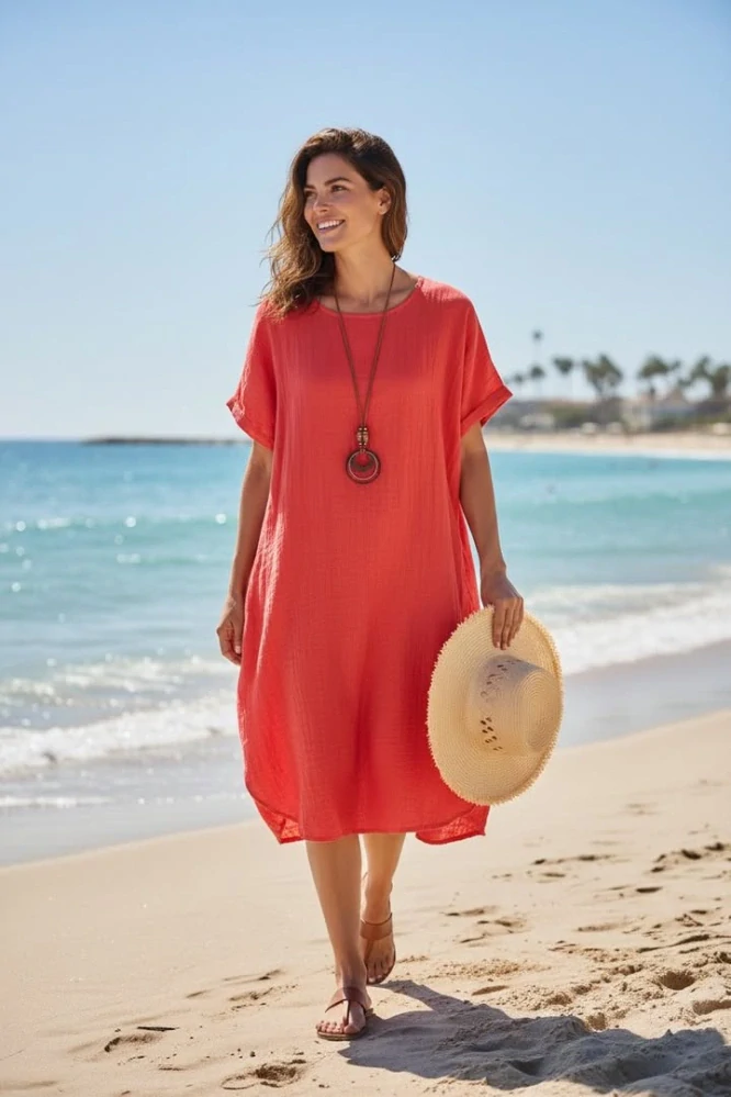 Dámské mušelínové šaty JULA s náhrdelníkem coral