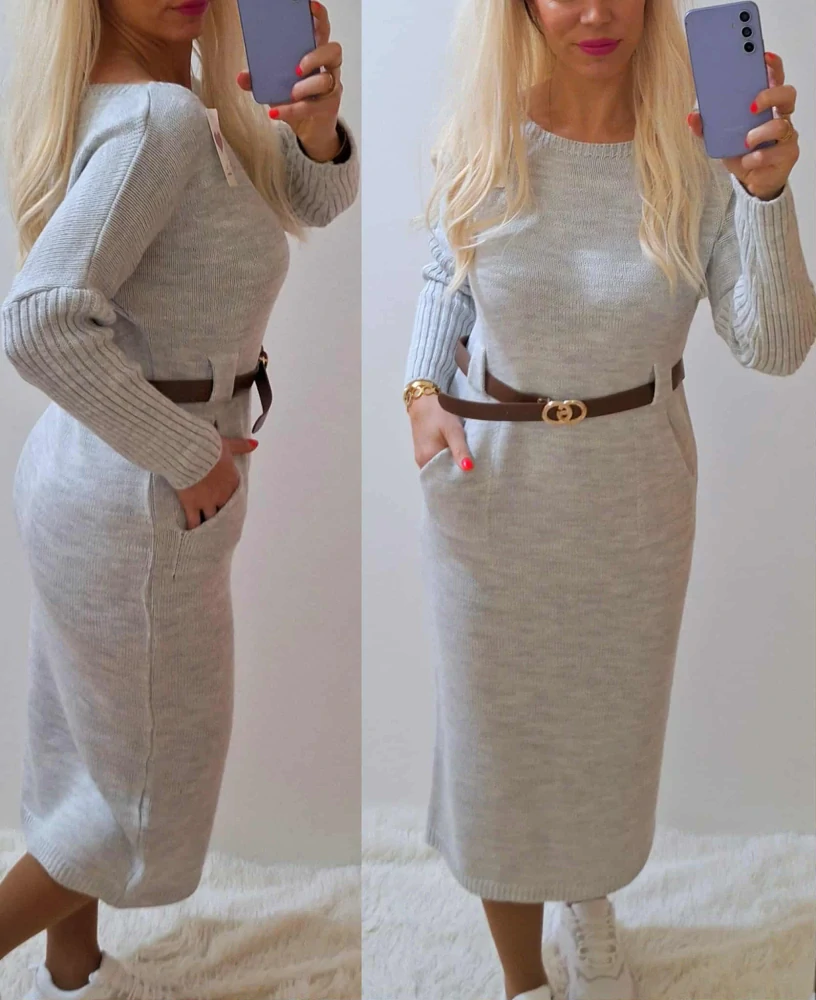 Dámské pletené šaty EMILY s páskem šedá