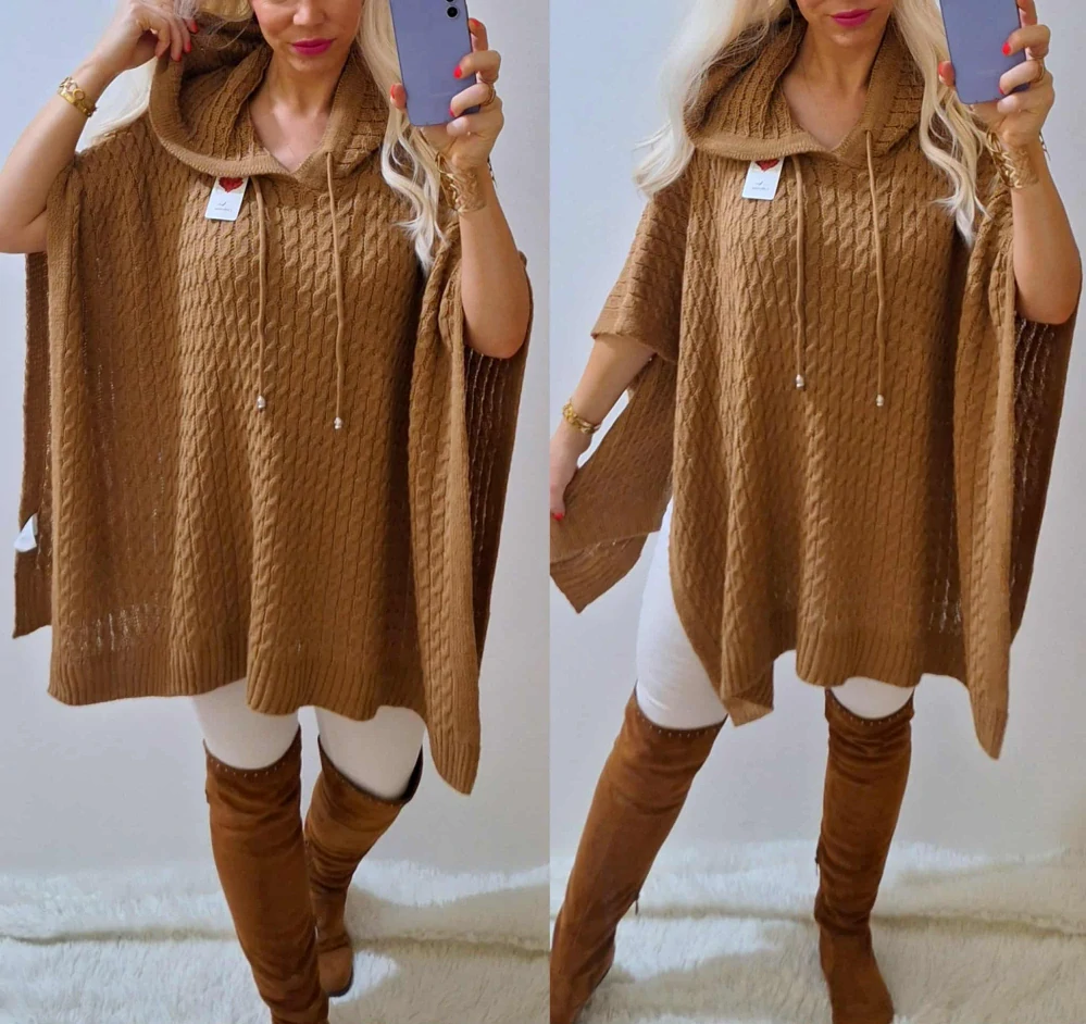 Dámské pletené svetrové pončo LEJLA s kapucí