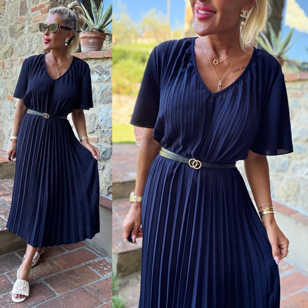 Dámské plisované šaty ZORKA s páskem tmavě modrá
