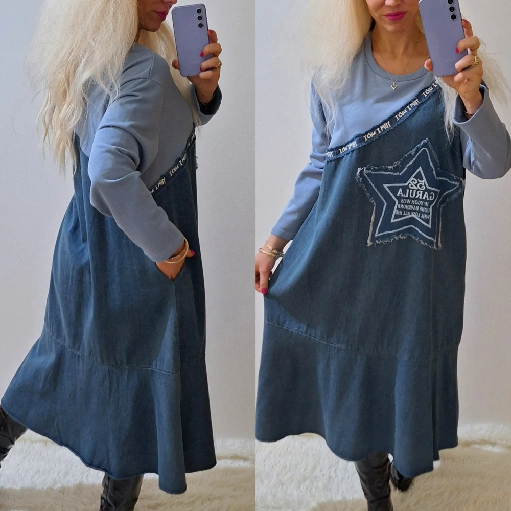 Dámské šaty GARULA kombinace rifloviny s látkou