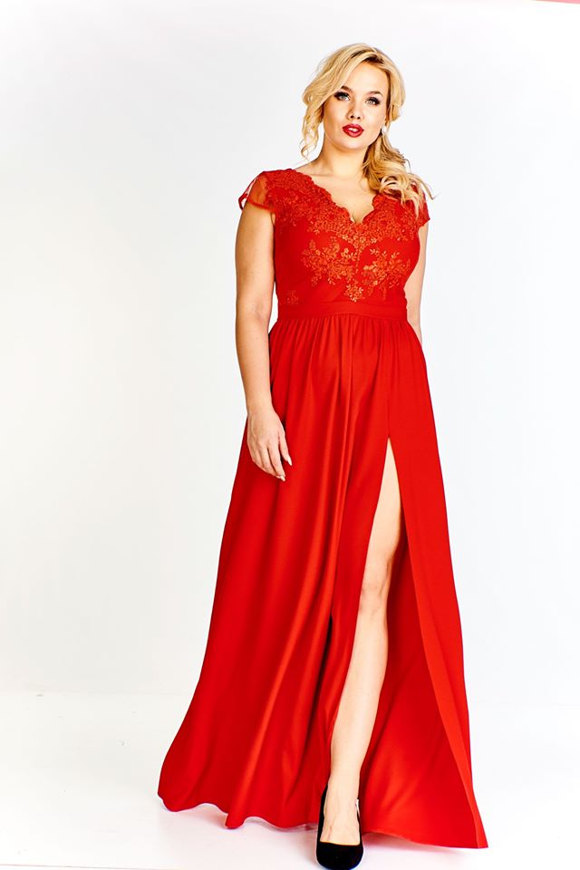 Dámské společenské šaty s krajkovým živůtkem CHANTELL červená