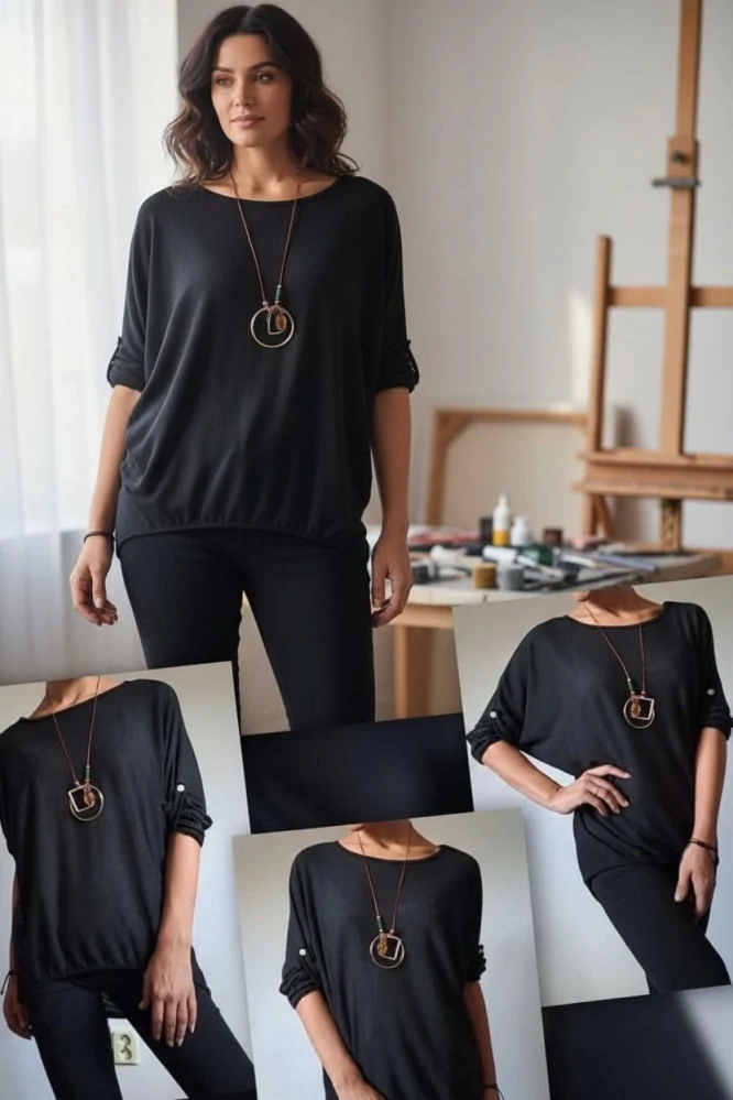 Dámské tričko LUSSY s náhrdelníkem černáSkladem 2 ks370 Kč/ ks