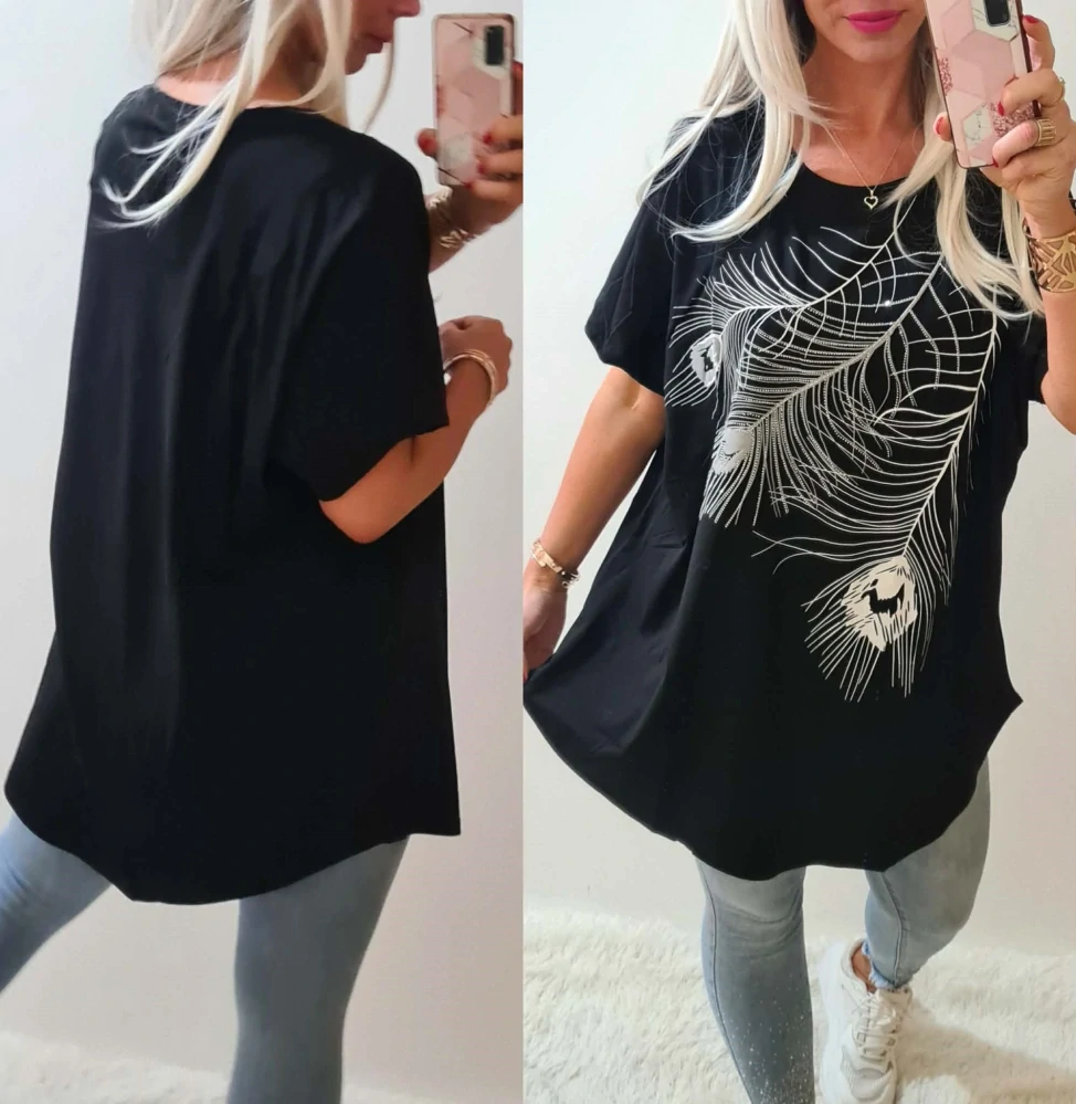 Dámské tričko/tunika PAVÍ PÍRKA černáSkladem 2 ks330 Kč/ ks