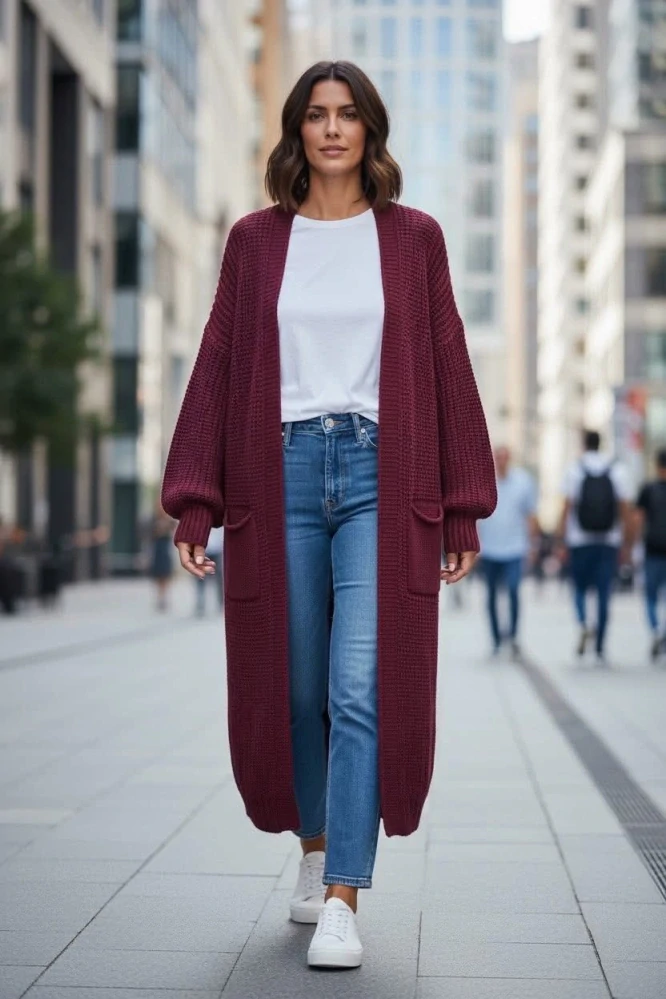 Dámský dlouhý pletený kardigan/svetr JADE bordóSkladem 2 ks430 Kč/ ks