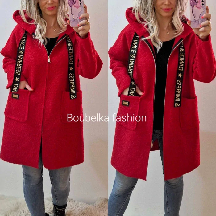 Dámský kabátek BUKLÉ s kapucí červená 2. jakost