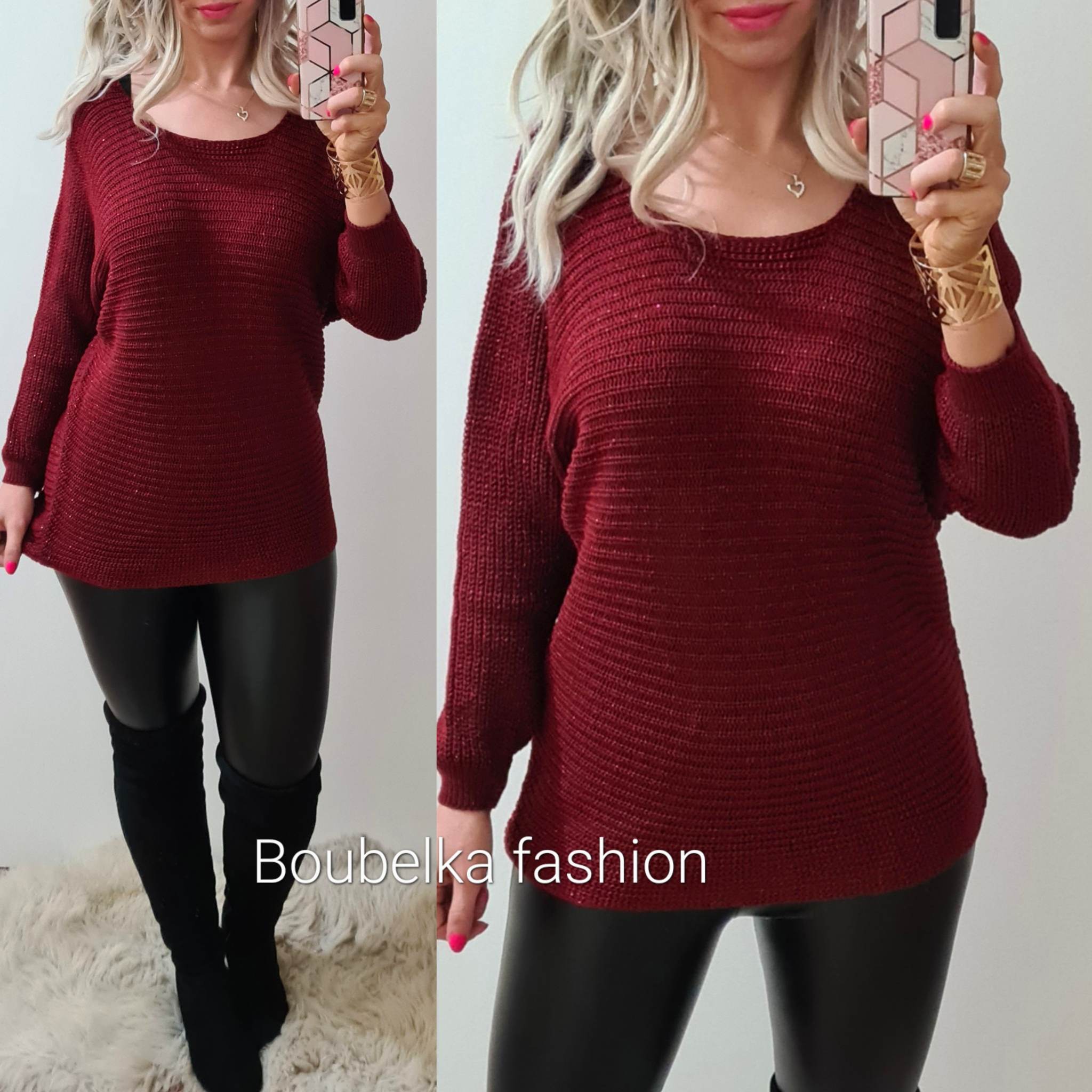 Dámský svetr se stříbrnou nitkou ESTELLA bordóSkladem 2 ks299 Kč/ ks