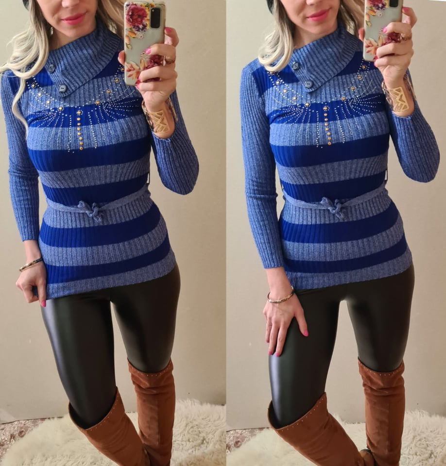 Dámský svetřík zdobený kamínky modrýSkladem 2 ks199 Kč/ ks