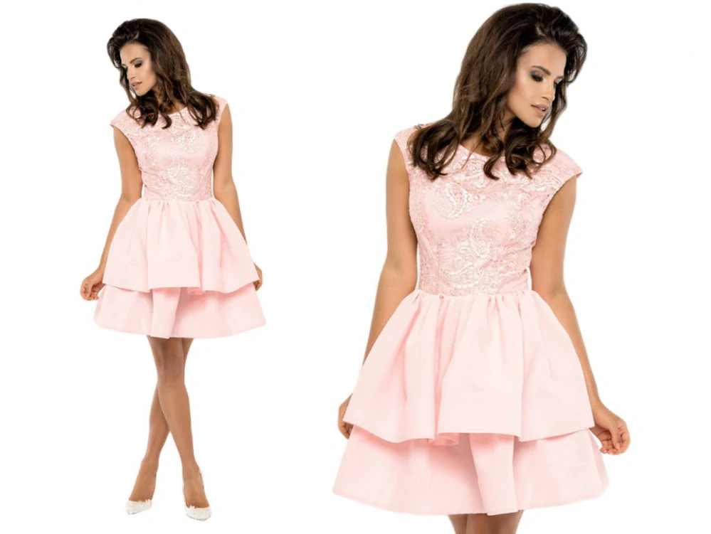 Koktejlové krátké šaty s dvojitou sukní růžové